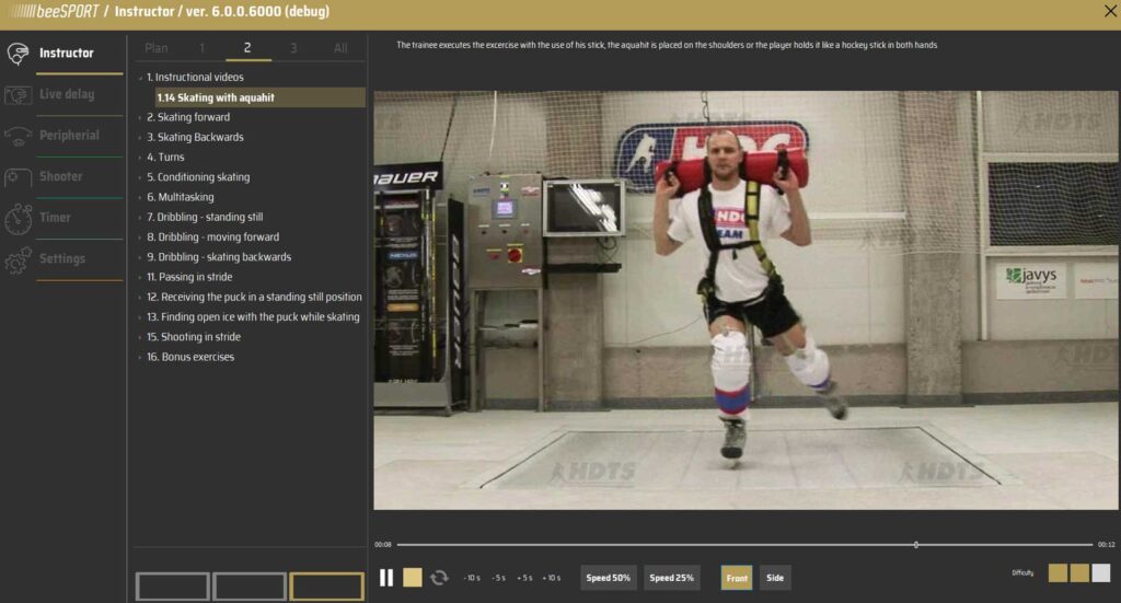 - Posúdenie úrovne základnej korčuliarskej techniky pomocou 12 kľúčových pozícií, možnosť porovnania progresu po tréningovom programe,